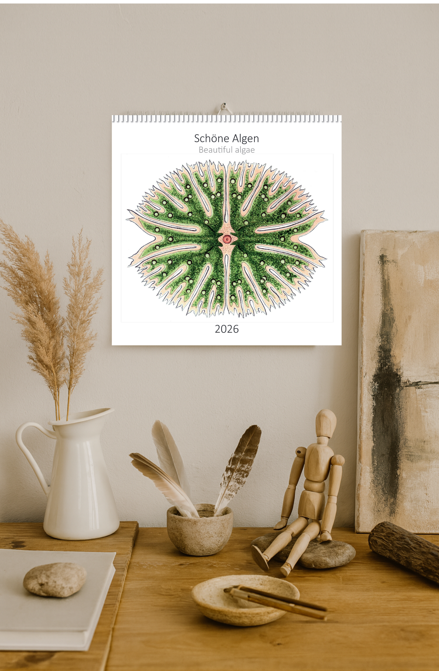 Die sorgfältig ausgewählten Illustrationen in diesem Algen-Kalender stammen aus dem 19. Jahrhundert – dem goldenen Zeitalter der naturkundlichen Illustration. Jeder Monat präsentiert hochwertige Reproduktionen herausragender Werke von Pionieren der Biologie wie Nathanael Pringsheim, William Harvey und Ernst Haeckel. Ihre Tafeln und Lithografien zeigen die erstaunliche Vielfalt der Algen mit wissenschaftlicher Präzision und künstlerischer Raffinesse.